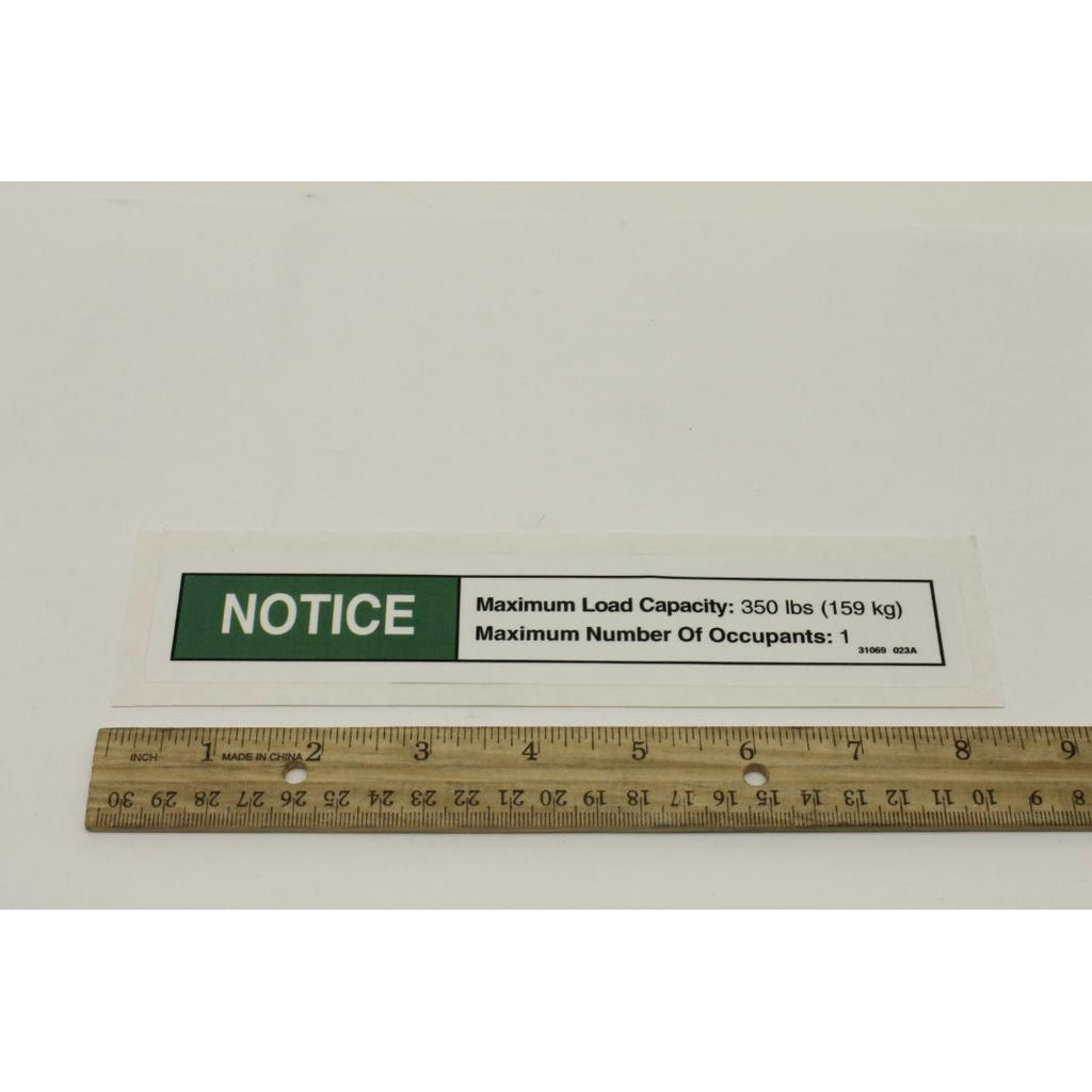 Genie Part # 31069, 31069GT - DECAL, NOTICE, MAX.CAP.350 LBS