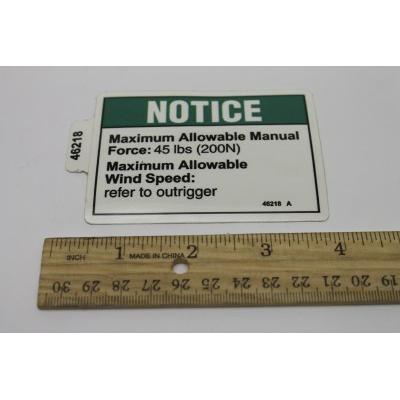 Genie Part # 46218, 46218GT - DECAL,NOTICE,SIDE FORCE 45,CE