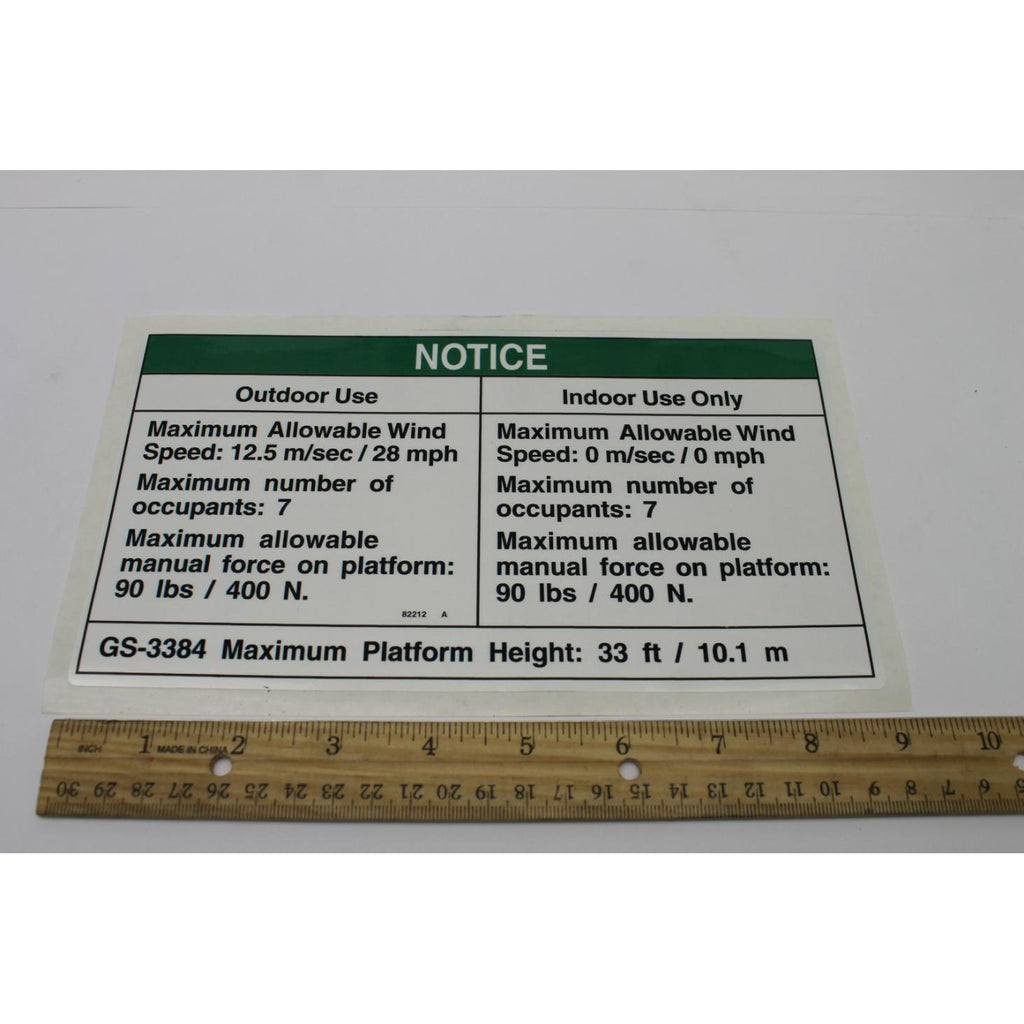 Genie Part # 82212, 82212GT - DECAL, NOTICE, SIDE FORCE AUS