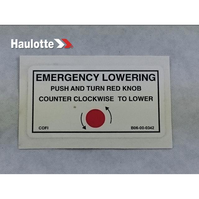 Haulotte Part # B06-00-0342 - Decal-emer Lowering 3 X 1.625