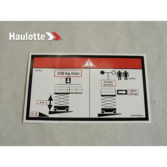 Haulotte Part # 307P227600 - FLOOR HEIGHT + LOAD LABEL