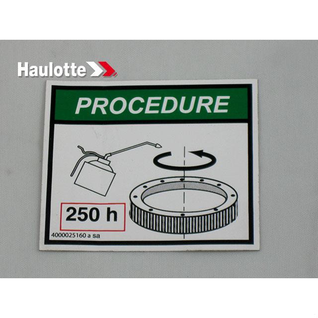 Haulotte Part # 4000025160 - LUBRICATION LABEL