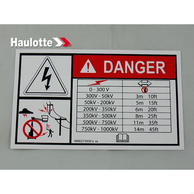 Haulotte Part # 4000273930 - ELECTROCUTION DANGER
