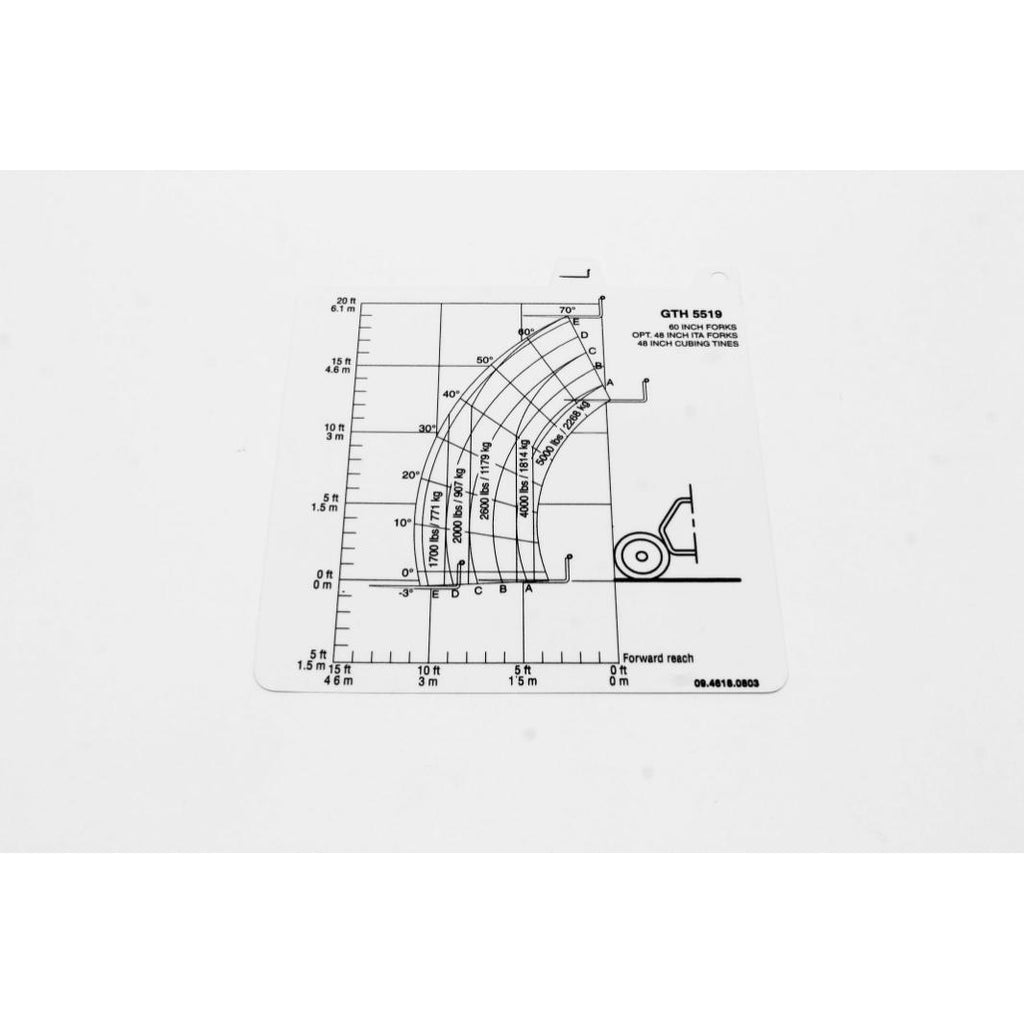 Genie Part # 09.4618.0803, 09.4618.0803GT - 48 INCH FORKS LOAD CHART, GTH-5519
