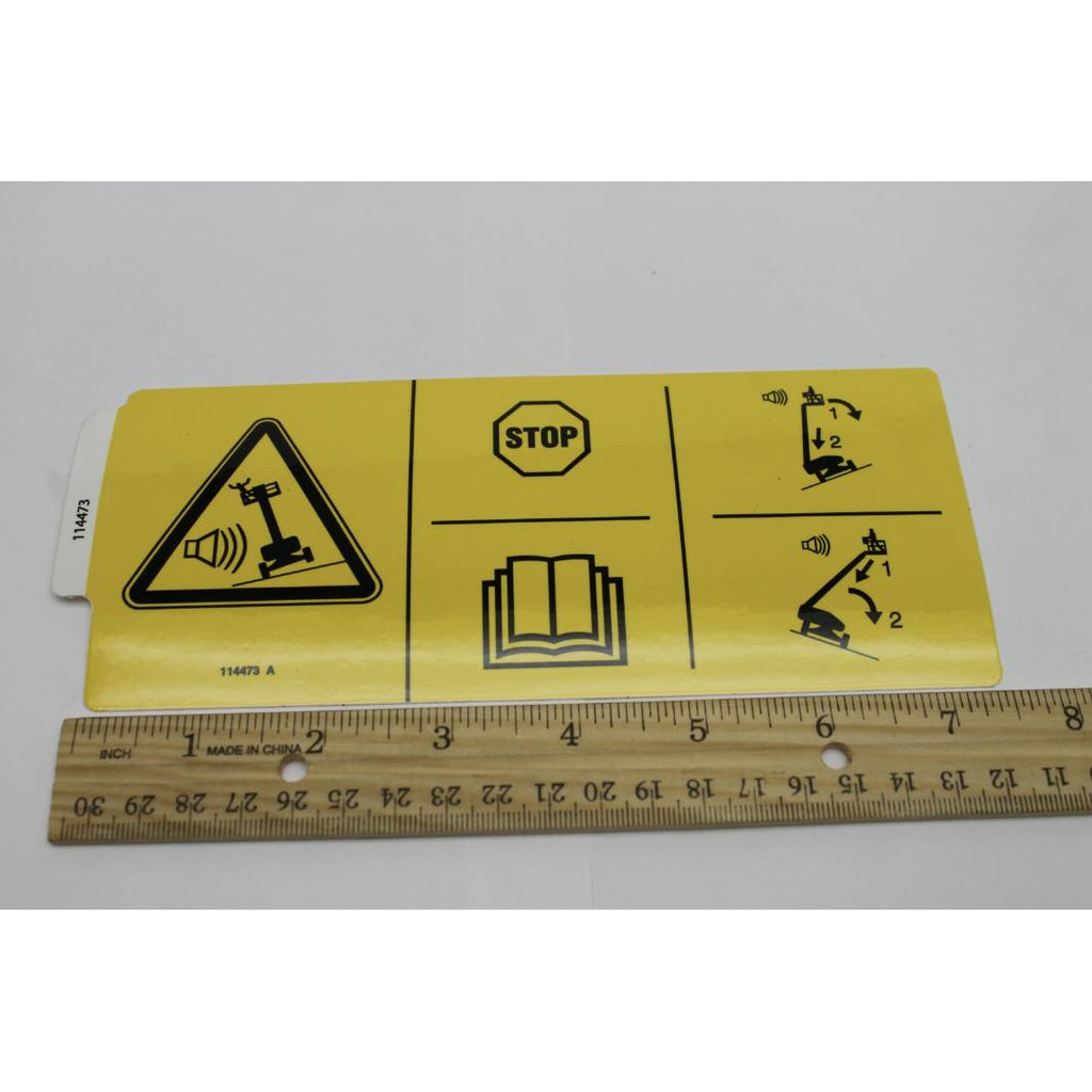 Genie Part # 114473, 114473GT - DECAL, DANGER, TIPOVER, TILT, SYM