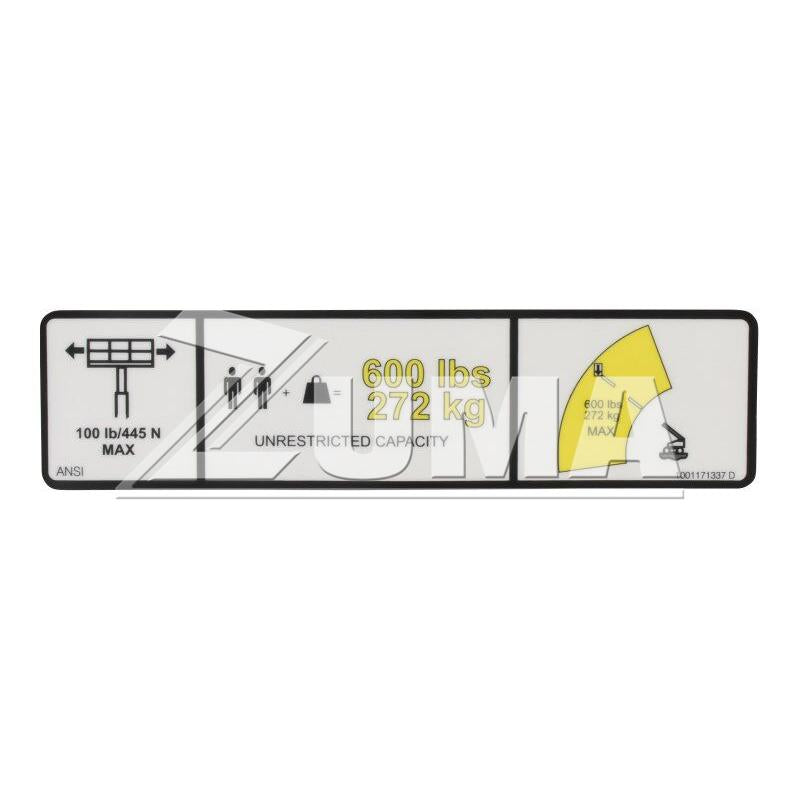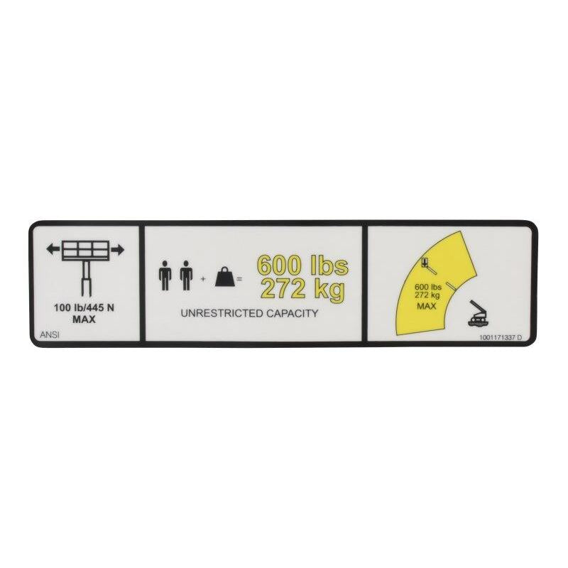 JLG Part # 1001171337 - DECAL, WARNING MAX CAP. (ANSI)