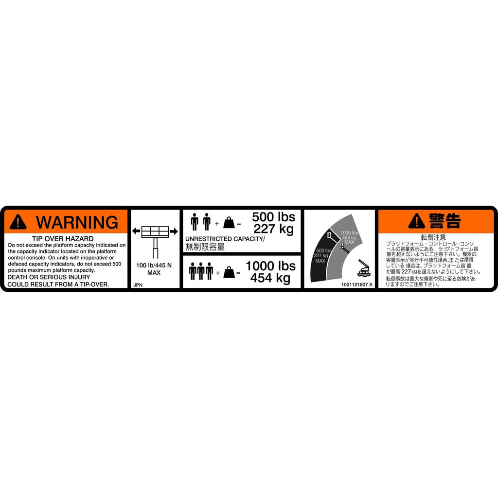 JLG Part # 1001121807 - DECAL, WARNING DUAL CAP
